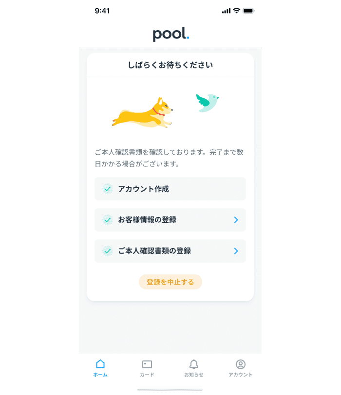 登録内容の確認が完了するまで、しばらくお待ちください。