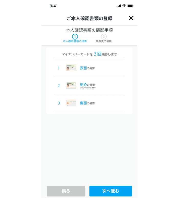 マイナンバーカードなどのご本人確認書類を撮影し、登録します。